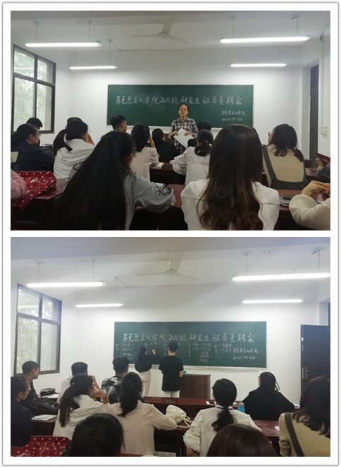 一片落叶点缀了秋色,一畦清露渲染了秋凉,秋雨,在不经意间,寸寸寒了蝉鸣。在这充满诗意的秋分时节,9月18日下午我院在教五201教室举行2018级研究生班委竞聘会,研究生秘书及班主任卢云晓老师、郑晨霞老师,部分学长及2018级全体研究生参加了此次会议。会议由卢云晓主持。