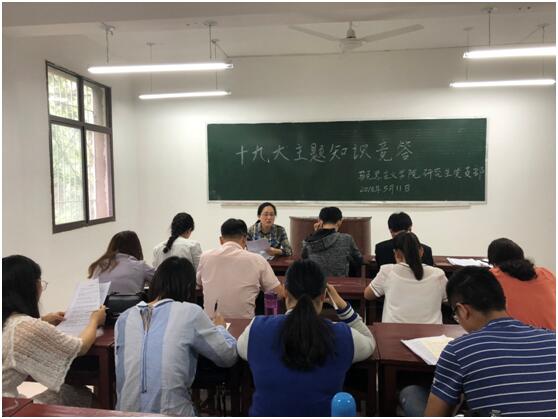 2018年5月11日上午,在教五201教室,我院研究生党支部开展了十九大报告主题知识竞答活动,支部书记卢云晓、部分党员和入党积极分子参加了活动,支部副书记魏中龑主持活动。