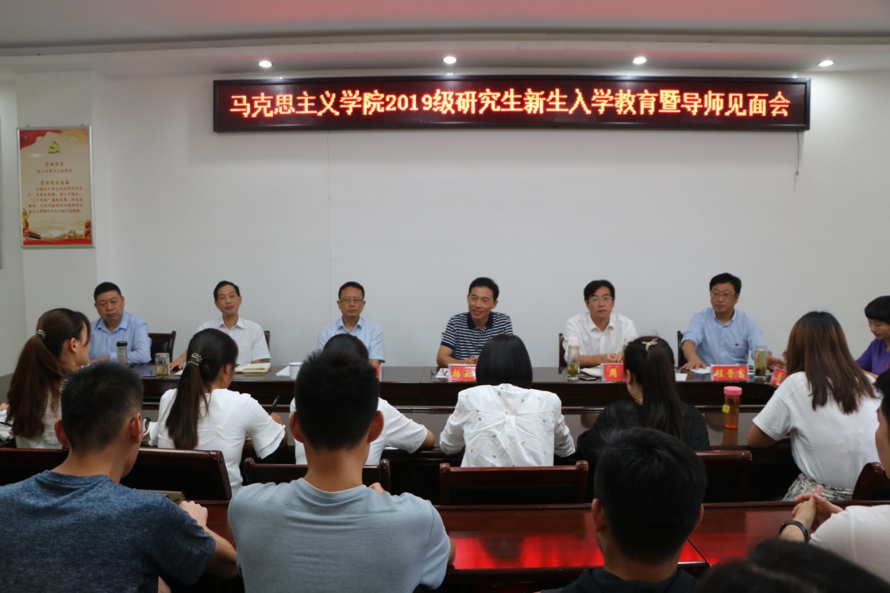 会议伊始,杨云善代表学院全体师生对2019级硕士研究生的到来表示欢迎,并从学科建设、科研成果、教学工作等方面,介绍了学院近年来取得的成绩。同时他也对新生提出四点希望:一是要完善品德、健全人格,努力培养各种优秀品质;二是要勤奋钻研、乐学善思,对马克思主义理论经典著作和习近平新时代中国特色社会主义思想进行深入学习,做到学思结合、知行合一;三是要志存高远、敢于拼搏,立志成才,踏踏实实地做好每一件小事;四是要树立终身学习、勇于实践、勤于反思的态度。