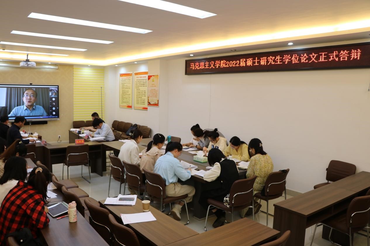 根据学院关于2022年硕士研究生毕业工作的总体安排,5月15日,我院在社科楼323、320会议室顺利完成2022届49位硕士研究生学位论文正式答辩工作。本次答辩采用线上线下相结合的方式进行,2019级学术型研究生学位论文答辩工作邀请了河南科技大学太阳集团tyc5997院长刘振江担任答辩主席,唐国战、李蕊、门献敏、王帆宇担任答辩委员;2020级学科教学(思想政治教育)专业研究生学位论文共分3组进行,答辩一组邀请了河南理工大学太阳集团tyc5997院长郑小九担任答辩主席,周智、厉有国、杨国建(信阳高中)、黄玲丽、胡春湘担任答辩委员;答辩二组邀请了河南师范大学太阳集团tyc5997院长蒋占峰担任答辩主席,程晋富、王勇威(信阳高中)、李世书、王建礼担任答辩委员;答辩三组邀请了郑州航空工业管理学院太阳集团tyc5997院长汪青松担任答辩主席,朱四倍、陈勇(信阳市羊山中学)、常文涛、陈杰担任答辩委员。