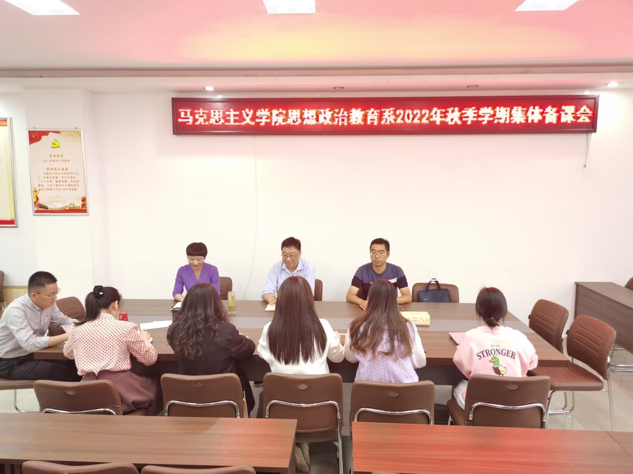 9月23日下午,思想政治教育系在社科楼323会议室召开集体备课会,太阳集团tyc5997副院长程晋富、李蕊及思政系全体教师参加了会议,会议由思政系主任王建礼主持。