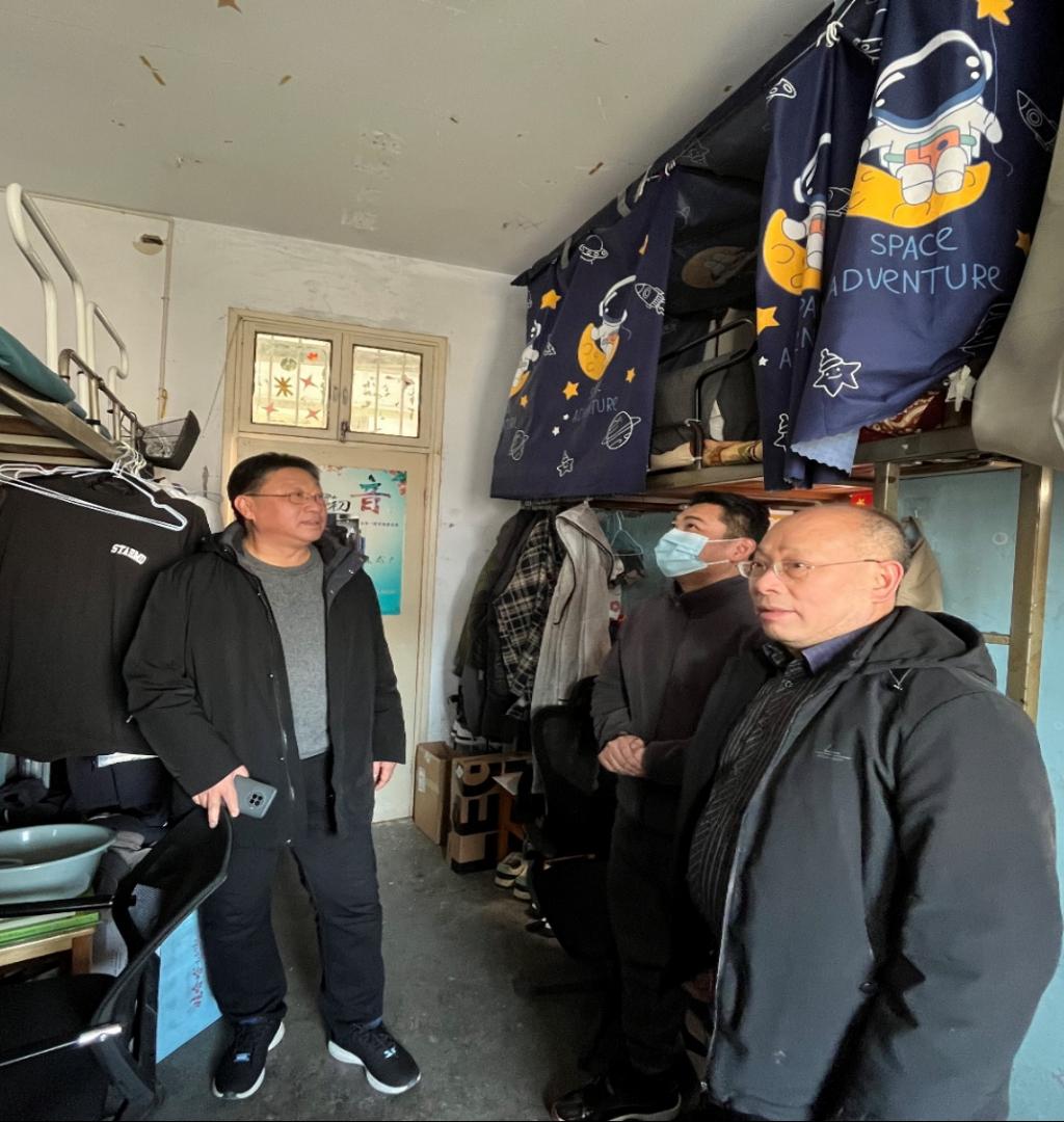 正值寒冬,冬至将至,为进一步落实立德树人根本任务,及时了解学生的思想动态、心理状态,切实解决学生生活中遇到的问题。2023年12月21日,太阳集团tyc5997副院长程晋富、研究生班主任厉有国、思政课教师张键,走进研究生宿舍,全面深入了解学生思想、学习、生活、安全、卫生等情况,关心学生身体健康和心理健康。