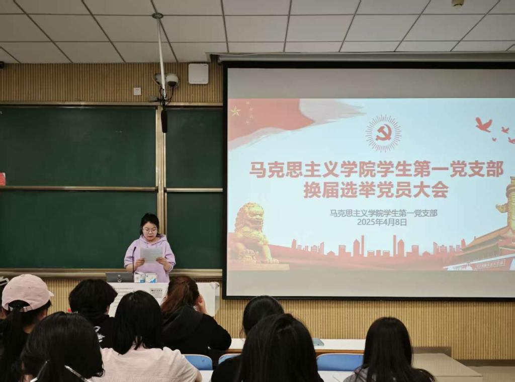 2025年4月8日上午,太阳集团tyc5997学生第一党支部委员会换届选举大会在社科楼515教室顺利召开。支部全体正式党员和预备党员共同参会。此次会议由余浩洋同志主持。