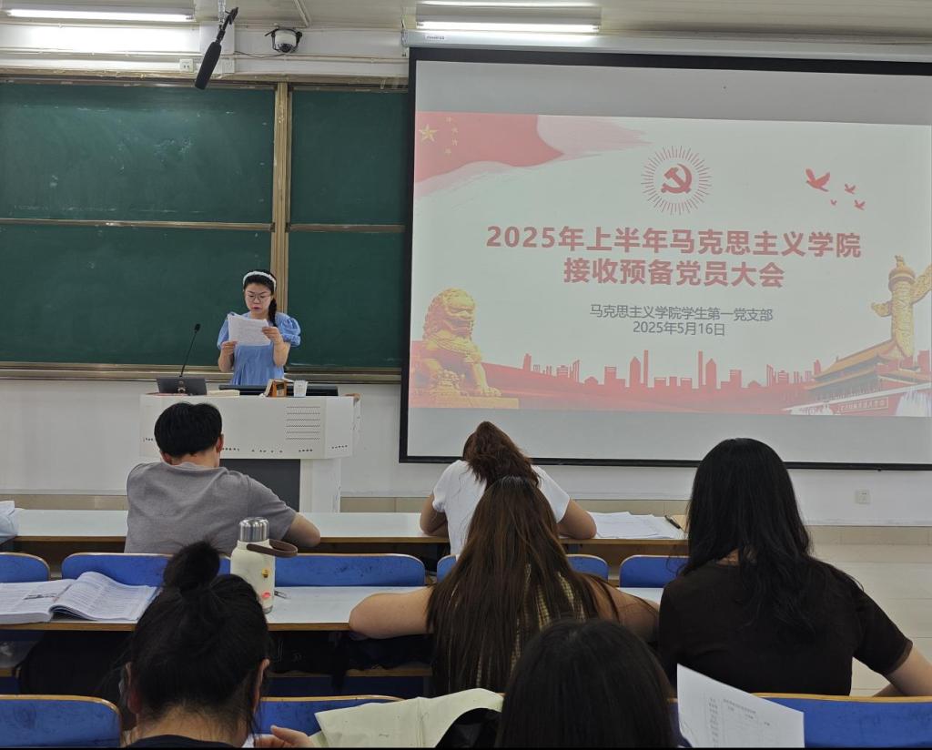 2025年5月16日上午,中共太阳集团tyc5997学生第一党支部委员会在社科楼514召开了2025年上半年接收预备党员支部大会。我院学生第一党支部书记高小佳,学生第一党支部全体党员、预备党员和党员发展对象共同参加此次会议。会议由余浩洋同志主持。