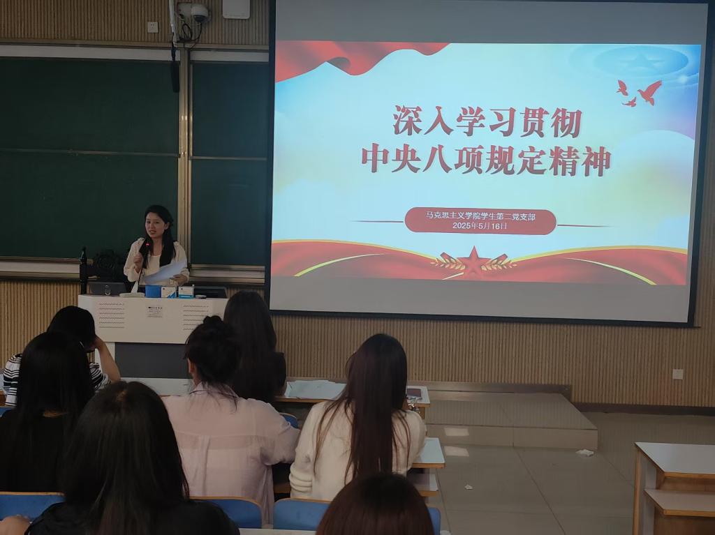 为进一步加强学生党支部建设,强化党员纪律意识,2025年5月16日,太阳集团tyc5997学生第二党支部召开了深入学习贯彻中央八项规定精神的专题会议。会议由学生党支部书记任婷主持,全体学生党员参会。