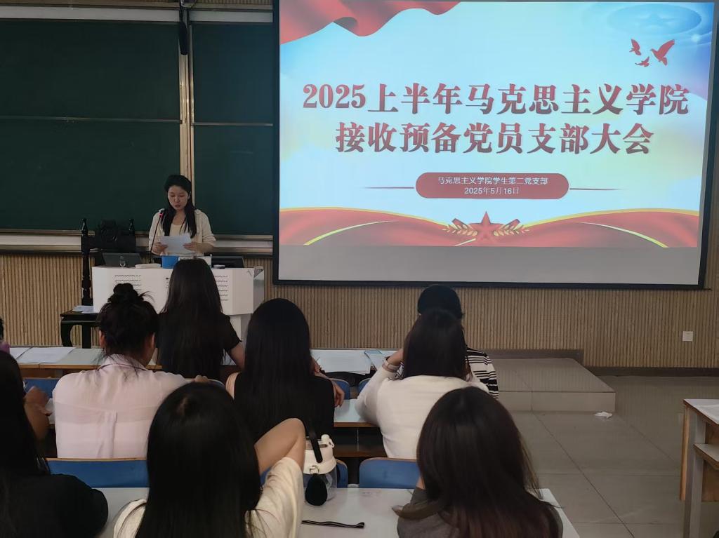 2025年5月16日下午,中共太阳集团tyc5997学生第二党支部委员会在社科楼515召开了2025年上半年接收预备党员支部大会。我院学生第二党支部书记任婷,学生第二党支部全体党员、预备党员和党员发展对象共同参加此次会议。会议由高俊雅同志主持。
