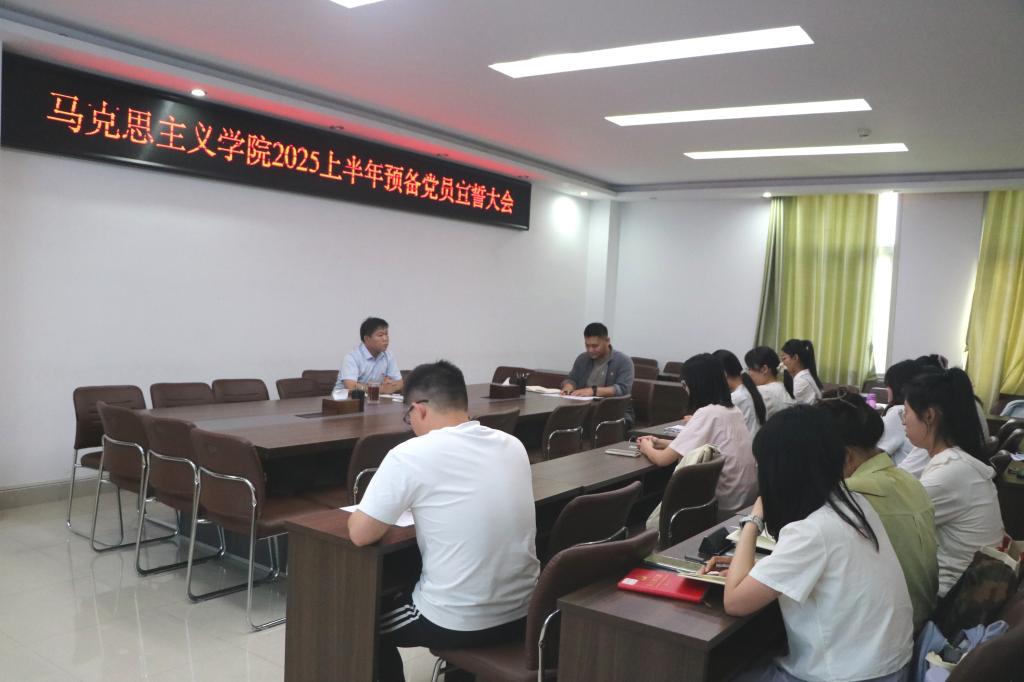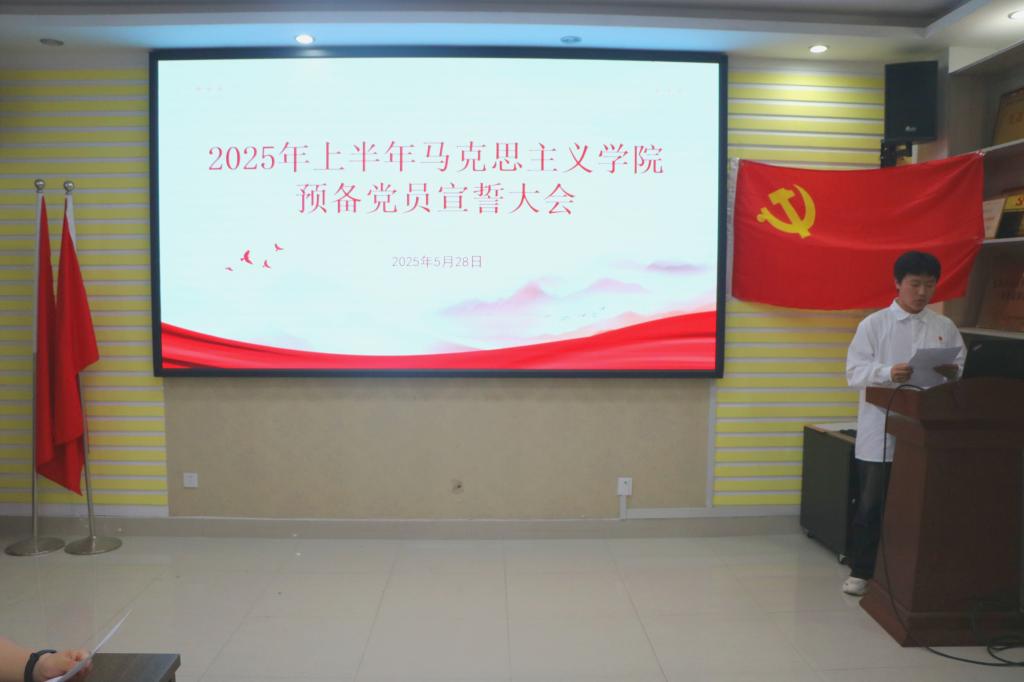 5月28日下午,太阳集团tyc5997于社科楼323教室召开2025年上半年预备党员宣誓大会。我院党委副书记王超、组织员金天、部分党员代表以及全体预备党员共同参与本次会议。会议由余浩洋主持。