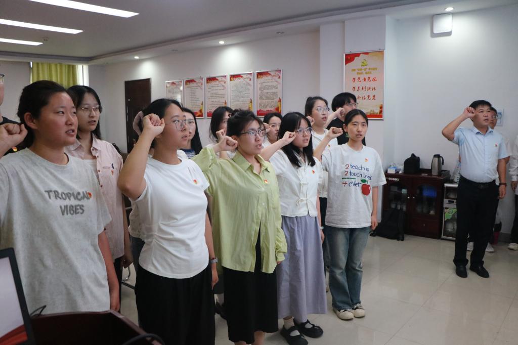 大会在庄严的《国际歌》中拉开帷幕,金天同志宣读了预备党员名单。在领誓人王超同志的带领下,全体预备党员面向鲜红的党旗,举起右拳,庄严宣誓。誓言字字千钧,表达了新党员们对党的忠诚以及为共产主义事业奋斗终身的坚定决心。宣誓仪式结束后,预备党员代表夏子涵、正式党员代表常康哲以及入党积极分子代表徐曼珍依次进行发言。他们表示,要深入学习贯彻党的创新理论,不断提升政治觉悟和党性修养,以实干担当践行初心使命,用优异表现回报党组织的培养与期望。