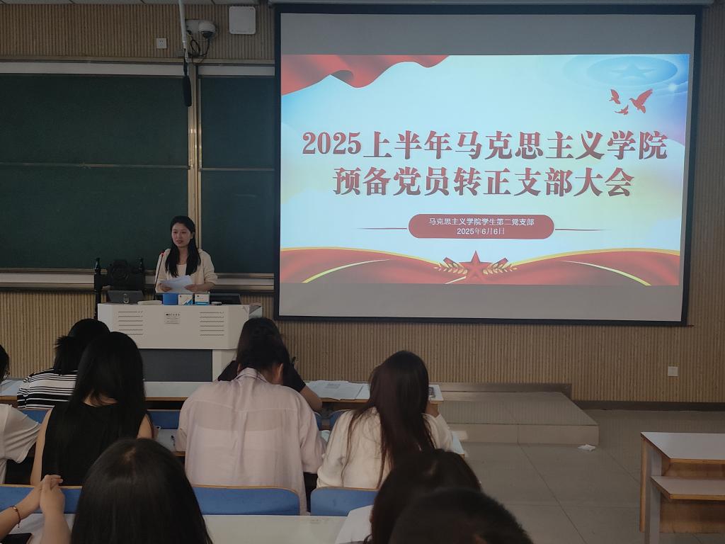 2025年6月6日上午,太阳集团tyc5997学生第二党支部在社科楼515教室组织召开了2025年上半年预备党员转正支部大会。我院学生第二党支部书记任婷、学生第二党支部全体正式党员、预备党员和党员发展对象共同参加本次会议。会议由任婷同志主持。