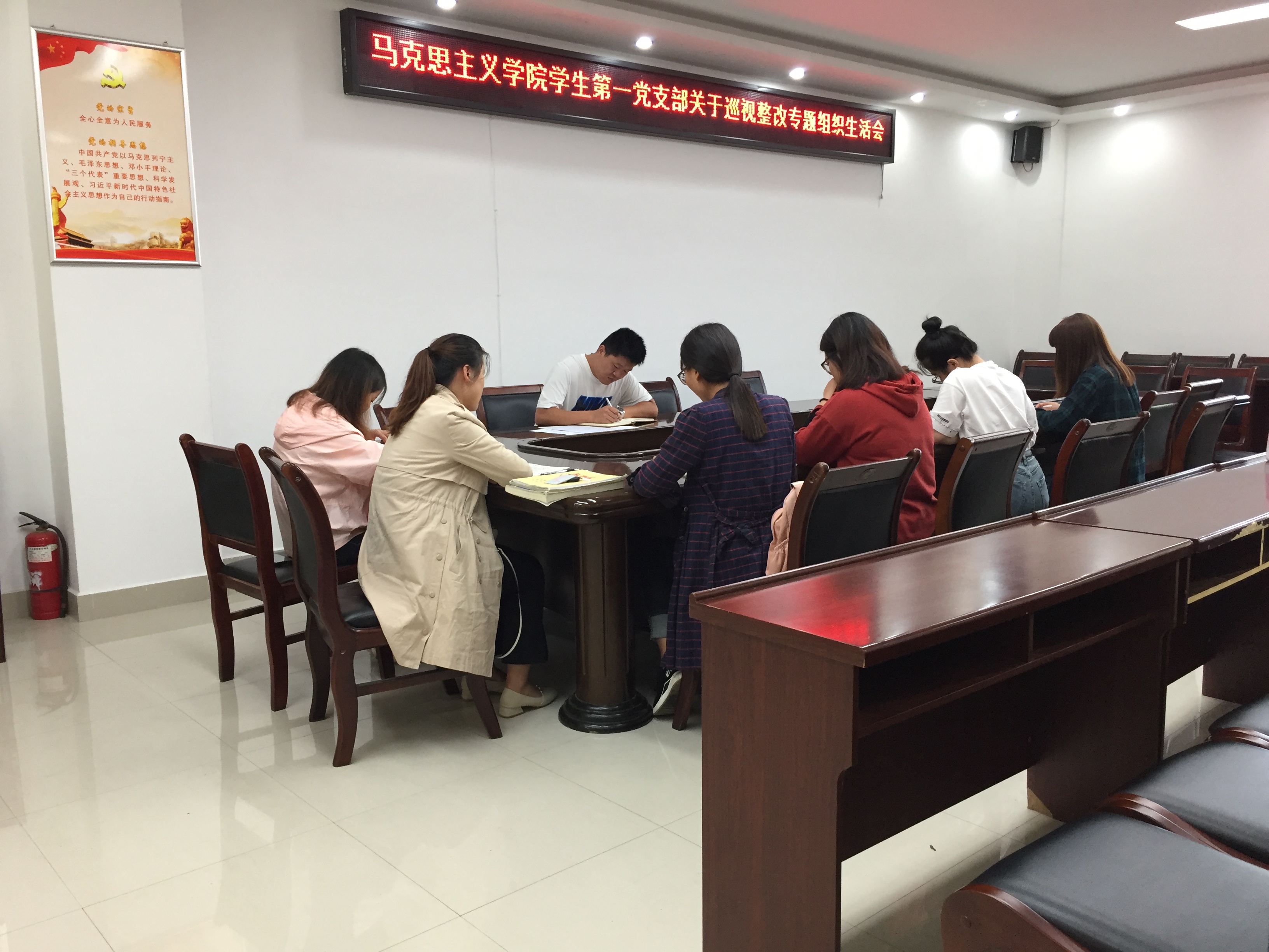 2018年9月21日下午,我院学生第一党支部在社科楼323会议室召开巡视整改专题组织生活会,支部全体党员和预备党员参加会议。会议由学生第一党支部书记孙绪曙同志主持。