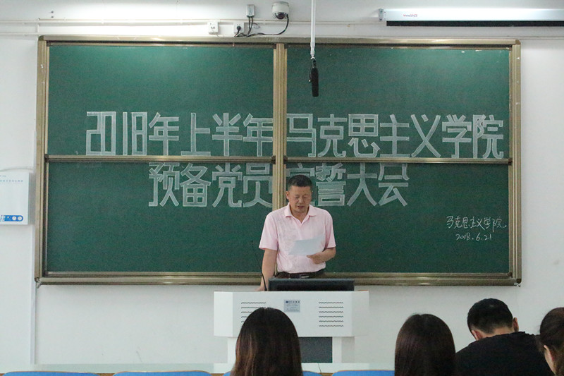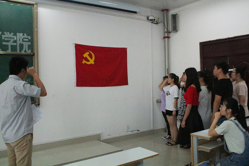 6月21日上午,太阳集团tyc5997在社科楼516教室召开了2018年上半年预备党员宣誓大会,我院党委副书记徐永新,学生第一党支部书记孙绪曙,第二党支部书记曹栋及正式党员、预备党员共同参加此次会议。宣誓大会由孙绪曙主持。