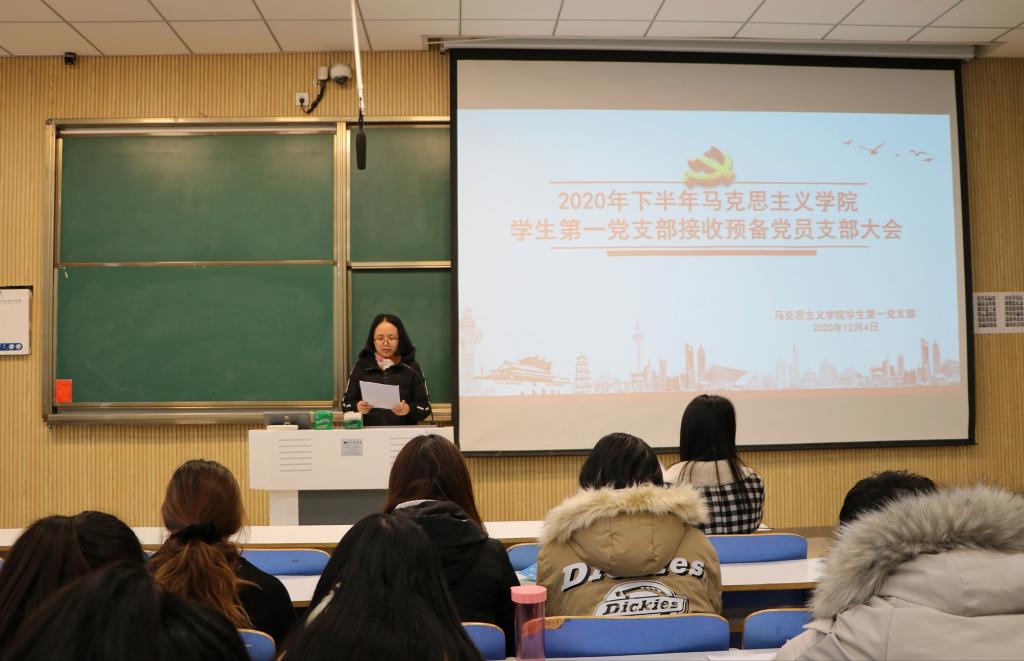12月4日上午,太阳集团tyc5997在社科楼515教室召开2020年下半年学生第一党支部接收预备党员支部大会。我院学生第一党支部支部正式党员曹菁菁、杨青青,学生第一党支部预备党员和党员发展对象共同参加本次会议。会议由李一凡主持。