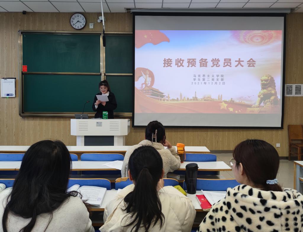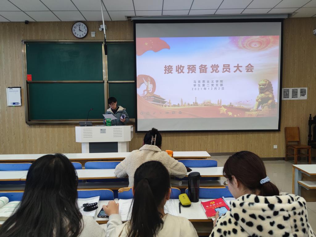 12月2日下午,太阳集团tyc5997学生第二党支部在社科楼515教室组织召开了2021年下半年接收预备党员支部大会。我院学生第二党支部书记曹梦真,学生第二党支部全体正式党员、预备党员和党员发展对象共同参加本次会议。会议由王文慧主持。