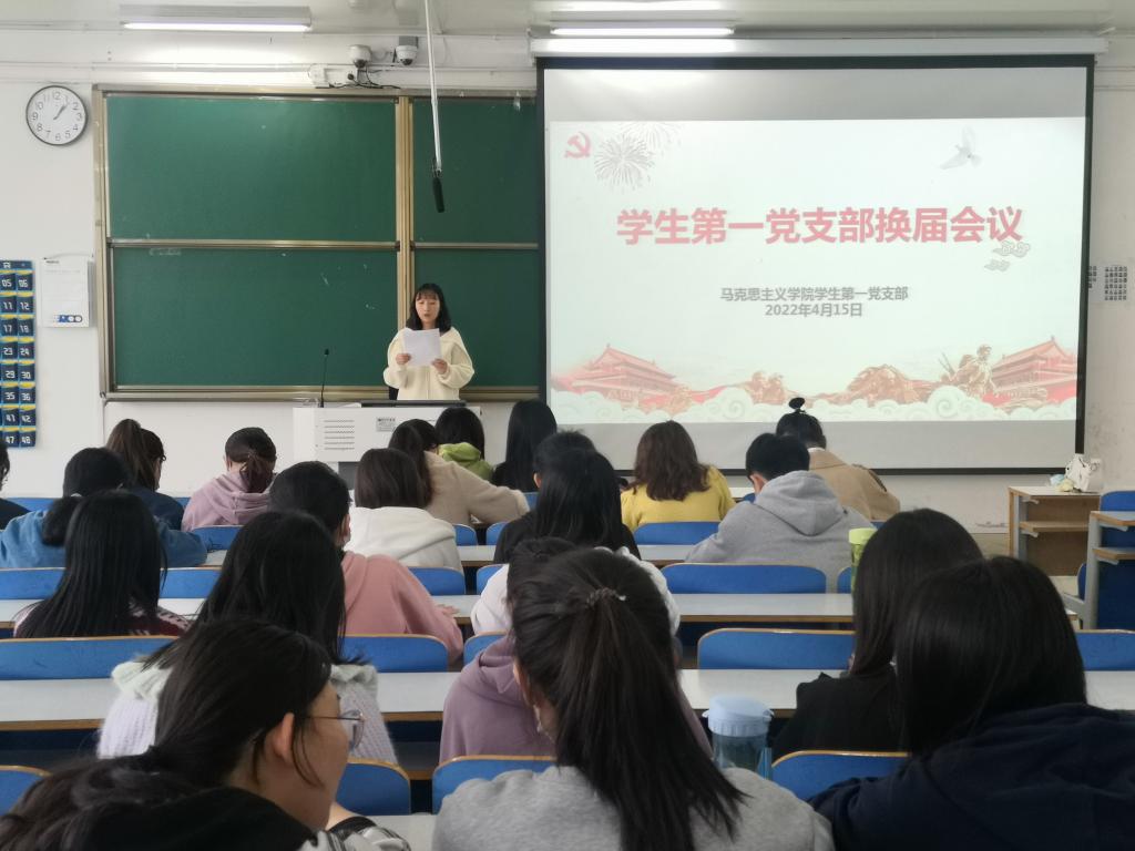 4月15日下午,太阳集团tyc5997学生第一党支部委员会换届选举大会在社科楼516教室顺利召开。支部全体党员和预备党员参会。此次会议由党支部组织委员靳雨露主持。