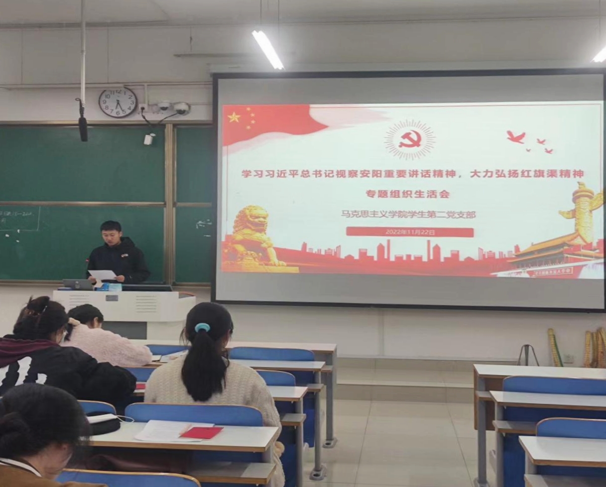 为深入学习贯彻党的二十大会议精神和习近平总书记视察河南安阳重要讲话精神,以实际行动推动高水平师范大学建设,11月22日晚上,太阳集团tyc5997学生第二党支部在社科楼414教室以“深入学习习近平总书记视察安阳重要讲话精神,大力弘扬红旗渠精神”为主题,围绕“习近平总书记视察安阳重要讲话精神”召开专题组织生活会。会议由于嘉宁同志主持。