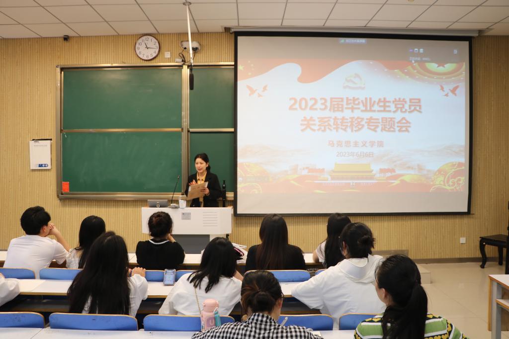 6月6日上午,太阳集团tyc5997在社科楼515教室召开2023届毕业生党员关系转移专题会。学院专职组织员任婷、分团委副书记安聪以及2023届本科、研究生毕业生党员共同参加会议。会议由安聪主持,采用线上线下相结合的方式。