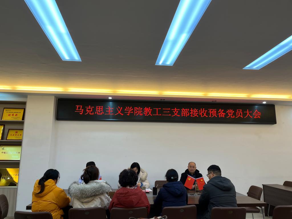 12月14日下午,太阳集团tyc5997教工第三党支部在社科楼323会议室组织召开了2023年下半年接收预备党员支部大会。我院教工第三支部书记王小平老师,教工三支部若干名正式党员共同参加本次会议,会议由王小平老师主持。