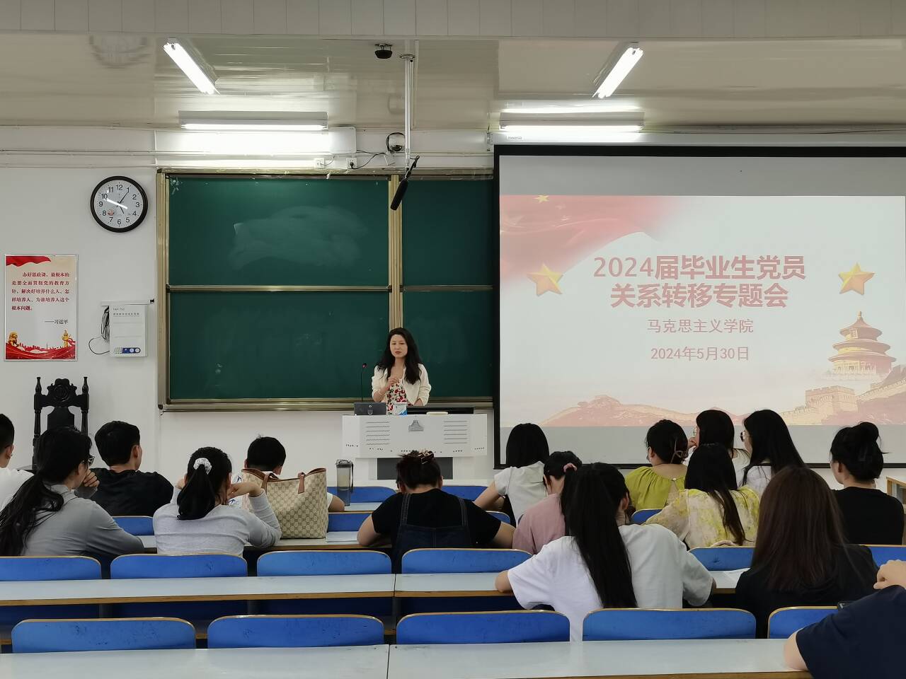 会上,刘玫森围绕毕业生党员组织关系转移主要流程、基本原则、转接办法等方面的内容进行了详细的讲解。其中,对党员组织关系转接去向地的规范名称、介绍信有效期等信息进行重点强调。随后,任婷就今年毕业生党员转接组关系的相关时间节点和具体安排进行了深刻解读,根据通知要求向全体毕业生党员说明了离校后转移组织的关系转接程序和注意事项,并客观阐述了学生党员完成组织关系转接的重要意义。