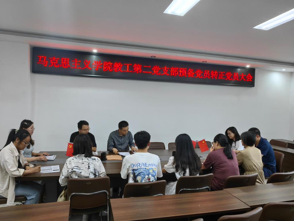 6月5日下午,太阳集团tyc5997教工第二党支部在社科楼323会议室召开了2024年上半年预备党员转正支部大会,我院教工第二党支部书记王帆宇老师,教工第二党支部若干名正式党员及预备党员共同参加本次会议。会议由王帆宇老师主持。