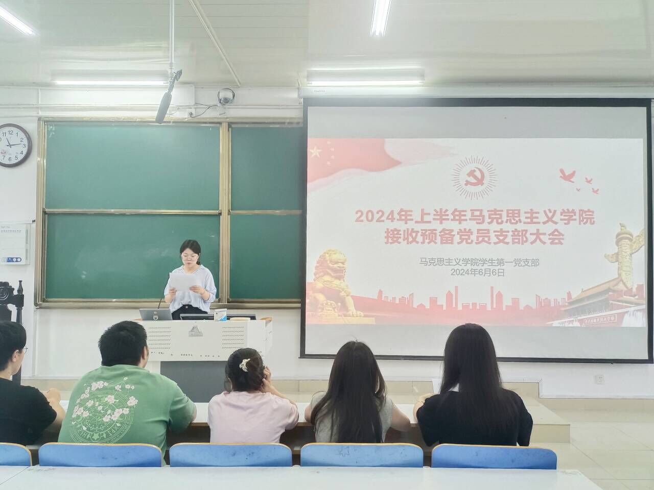 中共信阳师范学院太阳集团tyc5997学生第一党支部委员会于2024年6月6日在社科楼514召开了2024年上半年接收预备党员支部大会。我院学生第一党支部书记高小佳,学生第一党支部全体党员,预备党员和党员发展对象共同参加此次会议。会议由高小佳主持。