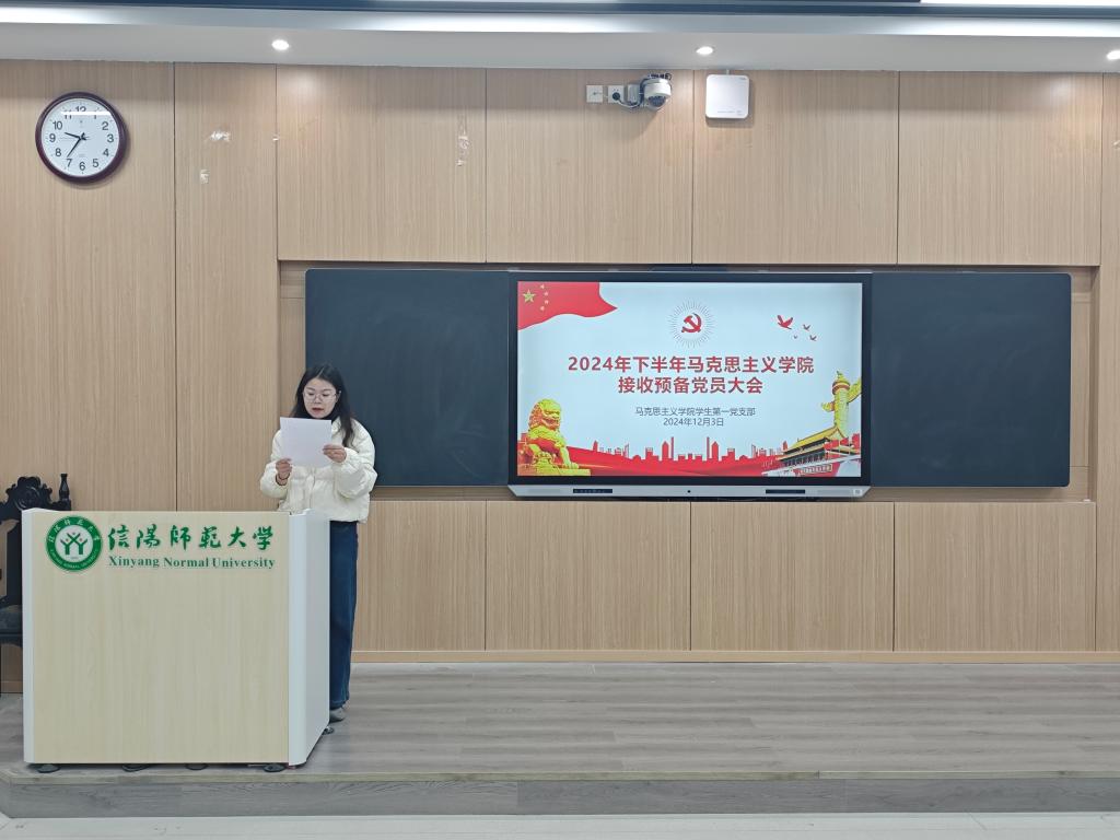 中共信阳师范学院太阳集团tyc5997学生第一党支部委员会于2024年12月3日在社科楼516召开了2024年下半年接收预备党员支部大会。我院学生第一党支部书记高小佳,学生第一党支部全体党员,预备党员和党员发展对象共同参加此次会议。会议由余浩洋同志主持。