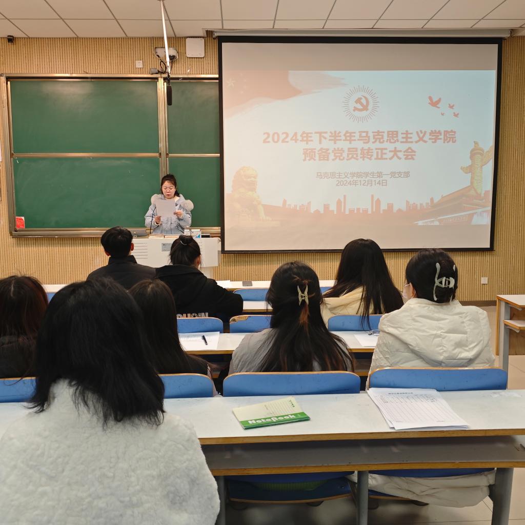 2024年12月14日下午,太阳集团tyc5997学生第一党支部在社科楼515教室组织召开了2024年下半年预备党员转正支部大会。我院学生第一党支部书记高小佳、学生第一党支部全体正式党员、预备党员和党员发展对象共同参加本次会议。会议由高小佳同志主持。