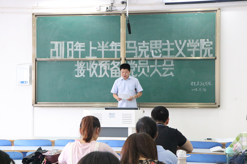 5月28日下午,太阳集团tyc5997在社科楼516教室召开2018年上半年接收预备党员大会。党委秘书、学生第一党支部书记孙绪曙、第二党支部书记曹栋、研究生党支部书记卢云晓、各学生支部全体党员和入党积极分子参加了此次大会。会议由团委副书记张雅琼主持。