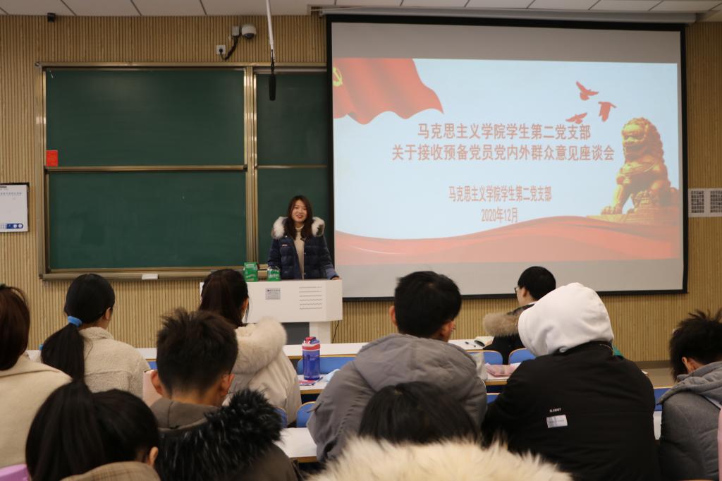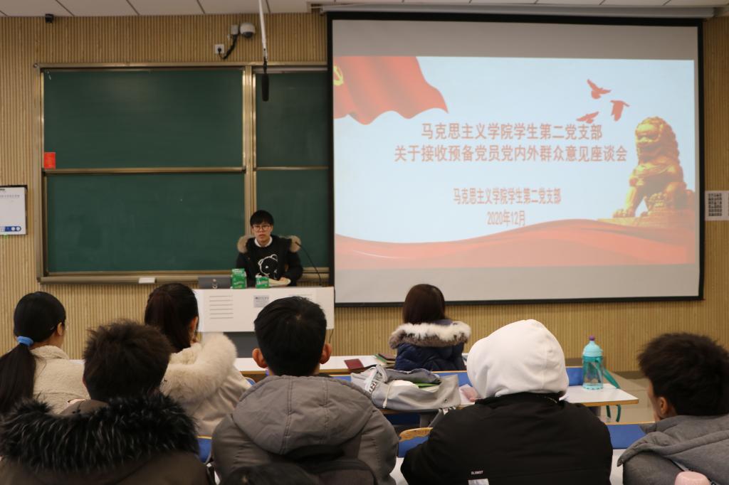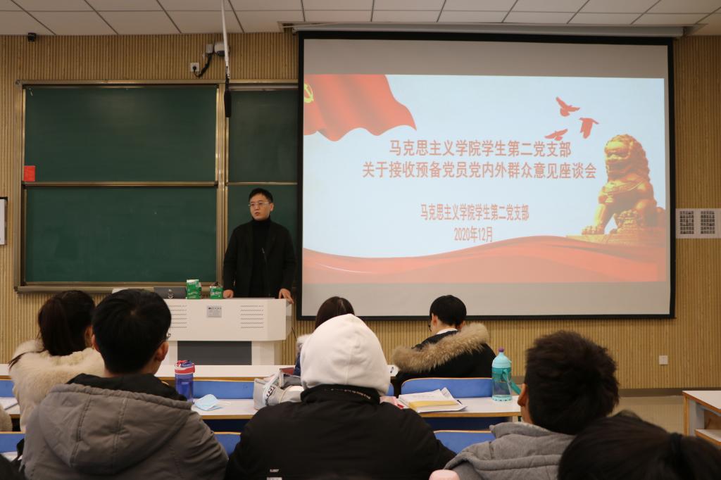 12月2日上午,太阳集团tyc5997学生第二党支部关于接收预备党员党内外群众意见座谈会在社科楼515教室顺利召开。我院学生第二党支部书记曹栋,支部正式党员陶青青、曹梦真,党员发展对象以及党内外群众共同参加此次座谈会。会议由曹栋主持。