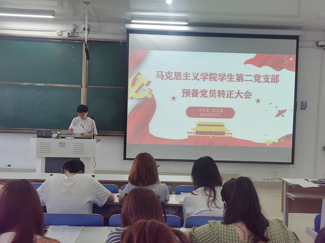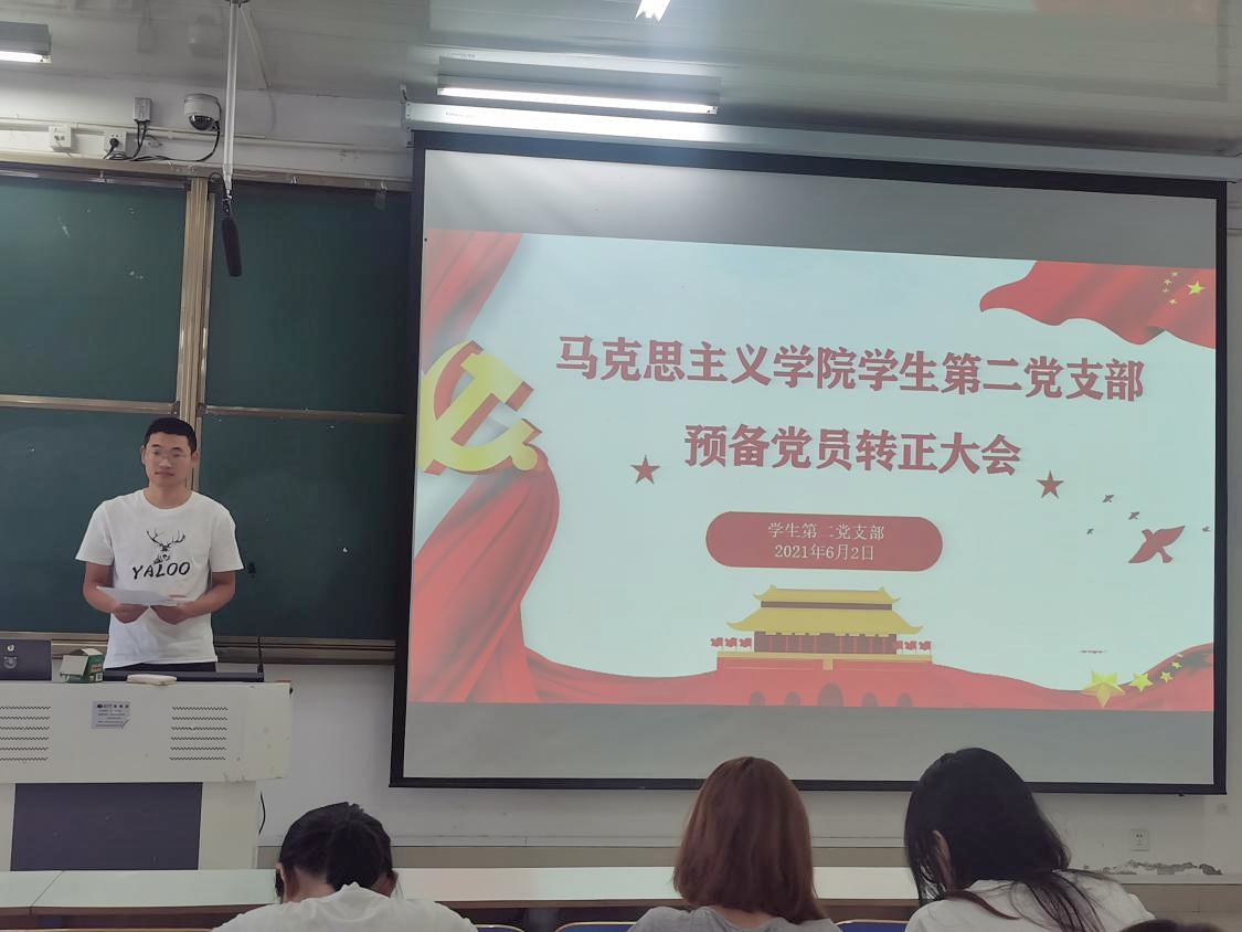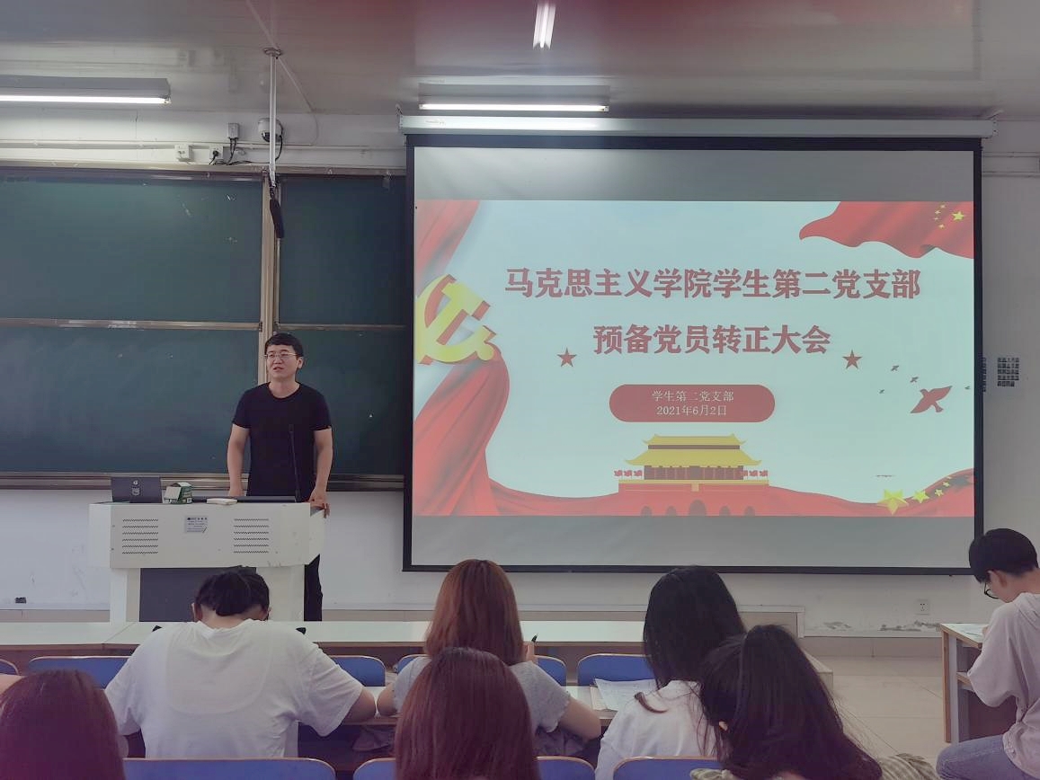 2021年6月2日上午,太阳集团tyc59972021年上半年学生第二党支部预备党员转正大会在社科楼516教室召开。学生第二党支部书记曹梦真,支部全体正式党员和预备党员共31人参加了此次会议。会议由杨康主持。