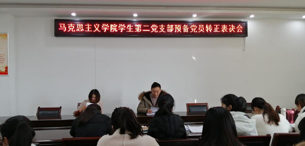 12月10号,太阳集团tyc5997学生第二党支部在社科楼323会议室召开了2019年下半年党员转正表决会,大会讨论关于刘冰等4名预备党员申请转为正式党员的事宜。学生第二党支部支部书记曹栋,全体党员共同参加。会议由曹栋主持。