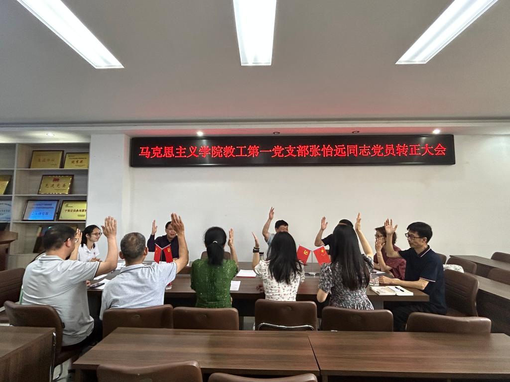 6月1日下午,太阳集团tyc5997教工第一党支部在社科楼323会议室召开入党转正大会。会议由教工第一党支部书记陈杰主持。