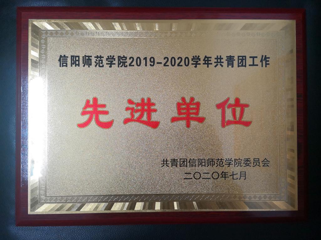 根据信阳师范学院《关于在团内实行目标管理的意见》和《信阳师范学院基层团委目标管理考核指标体系及标准》的要求,经校团委考核审定,我院在2019-2020学年的共青团工作中积极参与、表现突出,荣获“信阳师范学院2019-2020学年共青团工作先进单位”称号。