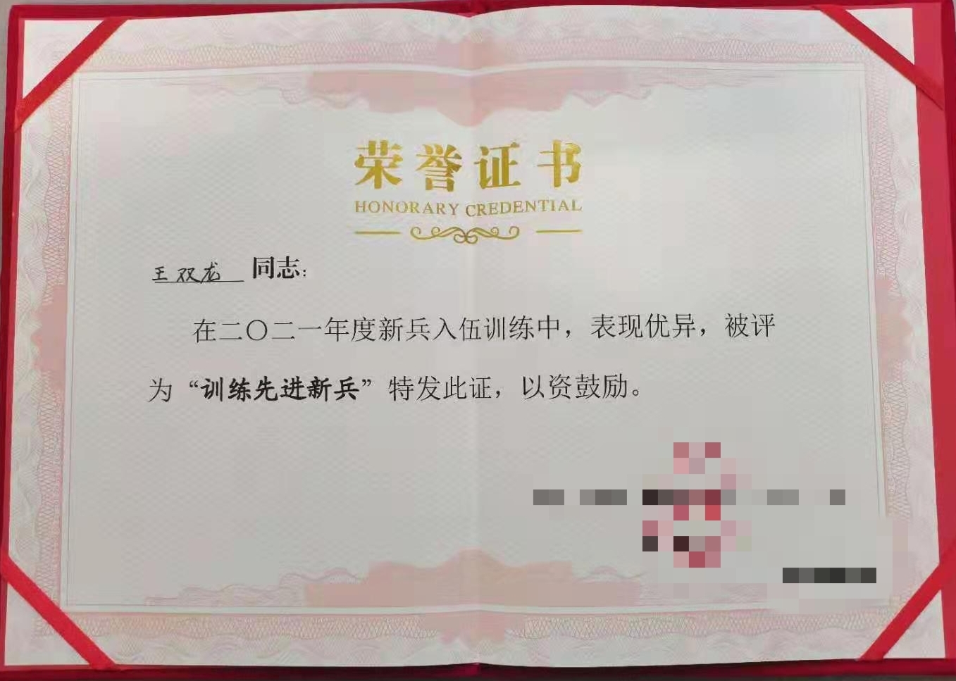 投身绿色军营,传承红色基因。近日,我院2021年入伍学生王双龙发来喜报。