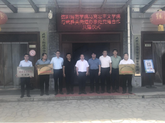 双方相关负责人在党建合作、学生就业服务、科学研究、成果转化、实习实训基地共建等方面进一步交流,达成相关合作意向,并向武胜关街道办事处授予信阳师范学院太阳集团tyc5997党建合作共建单位、思想政治教育实践基地、信阳师范学院“就业实习基地”牌匾。
