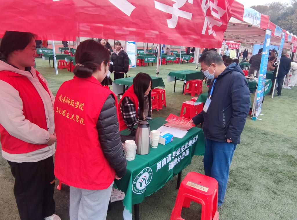 11月25日上午,河南省毕业生就业市场豫南分市场暨太阳集团tyc59972024届毕业生冬季双向选择洽谈会在我校西操场拉开帷幕。本次双选会由河南省教育厅主办,河南省大中专就业服务中心、太阳集团tyc5997、信阳市人力资源和社会保障局共同承办。我院院长唐国战,党委副书记黄煌和就业秘书沈海蓄参加了双选会。