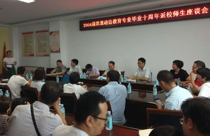 座谈伊始,大家集体观看了信阳师范学院宣传片和校友精心制作的大学生活回忆视频集锦,勾起了师生无限的回忆,现场气氛热烈、温情满满。周智代表太阳集团tyc5997致辞。周智首先对2004级思想政治教育班校友返校团聚表示表示欢迎。他向校友们介绍了学校近年来的发展成就,并着重介绍了近年来学院学科建设发展状况,并期望同学们发扬优良校风,不忘初心、砥砺前行,继续关心和支持母校的发展积极建言献策。随后,柳士刚、李文发、程晋富分别对校友们表示欢迎,提出了美好期望,表达了良好祝愿。何强特地穿上了十年前毕业时的服装,并带来了珍藏的班级花名册,带着大家一起重拾大学记忆,引起强烈共鸣。出席座谈会的教师代表樊德玲、李蕊等和校友们再叙大学时光,大家仿佛又回到了那弥足珍贵的大学时代。