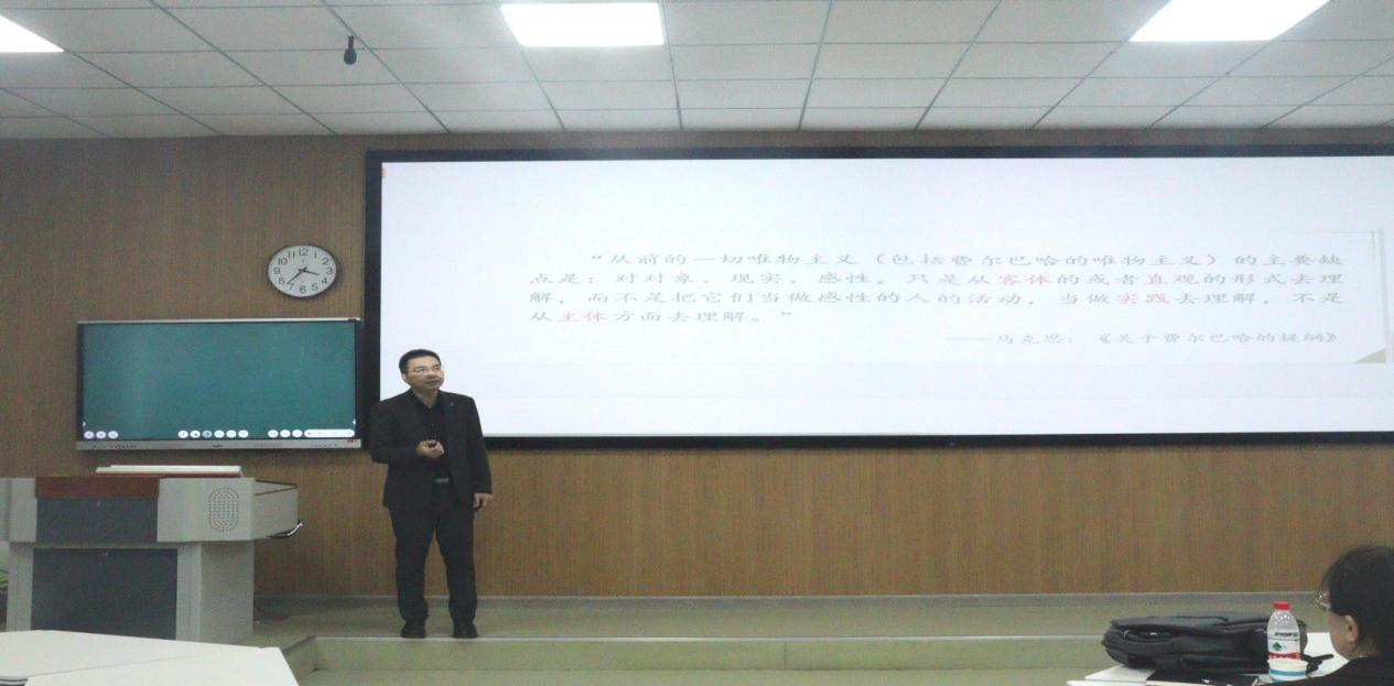 第三届全国高校思政课教学展示活动特等奖和河南省高校思政课教学技能大比武特等奖获得者,河南理工大学太阳集团tyc5997副教授王家涛作“马原理”课第二专题“辩证唯物主义世界观”教学展示。