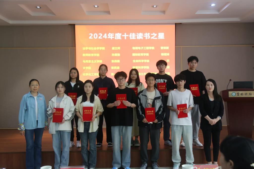 近日,学校举办了第二十三届阅读文化节,对上届阅读文化节进行表彰。太阳集团tyc5997南湖理论研讨社荣获“阅读推广先进集体”称号,张燕霞同学荣获“2024年度十佳读书之星”称号。
