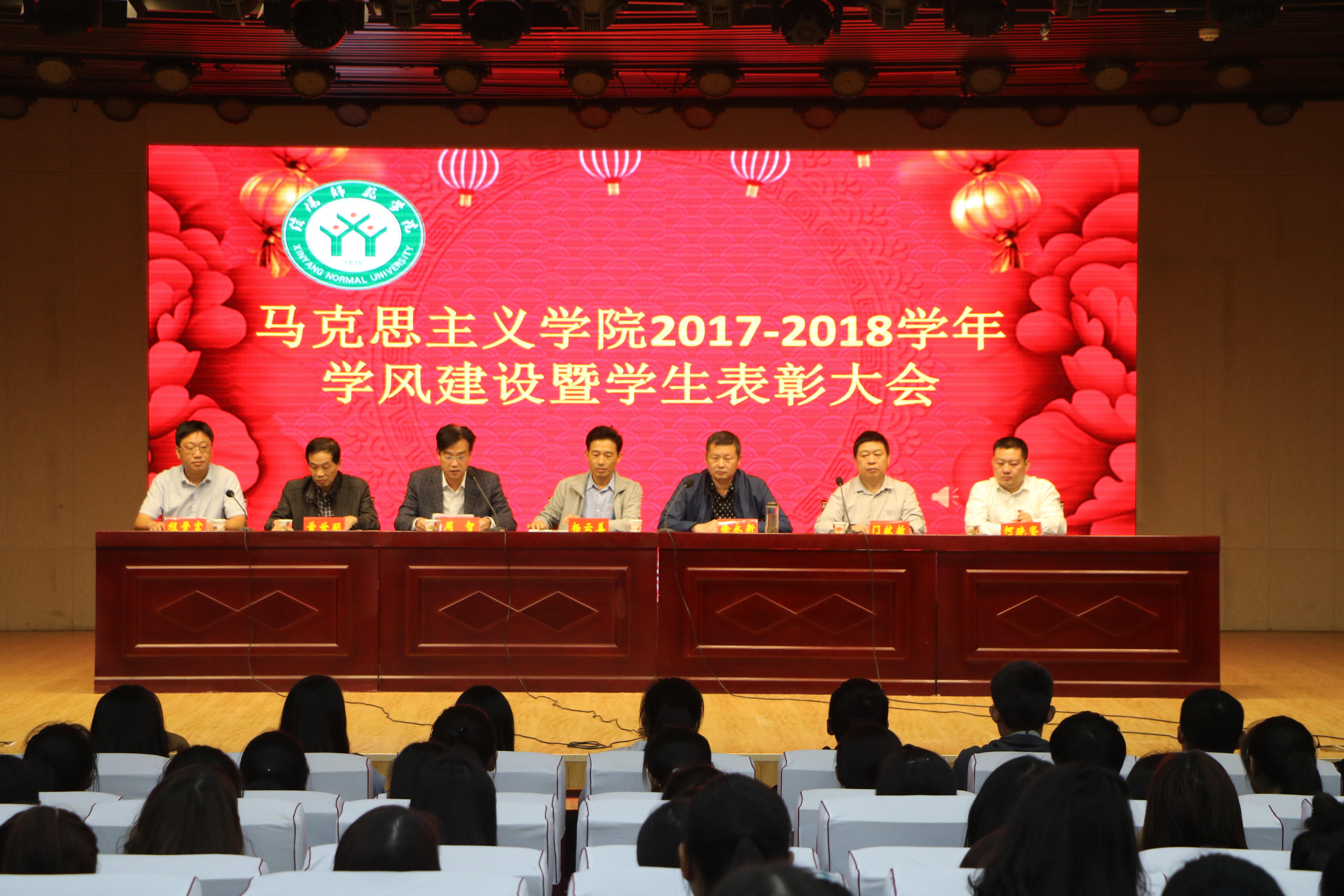 金秋送爽,丹桂飘香。9月26日下午,太阳集团tyc59972018级新生开学典礼暨2017-2018学年学生表彰大会于理科楼报告厅隆重举行。院长杨云善,副院长周智、黄世明、程晋富,当代马克思主义研究所副所长徐永新、门献敏,党委副书记何晓坚,团委书记曹栋,团委老师曹菁菁出席了本次开学典礼。典礼由徐永新主持。