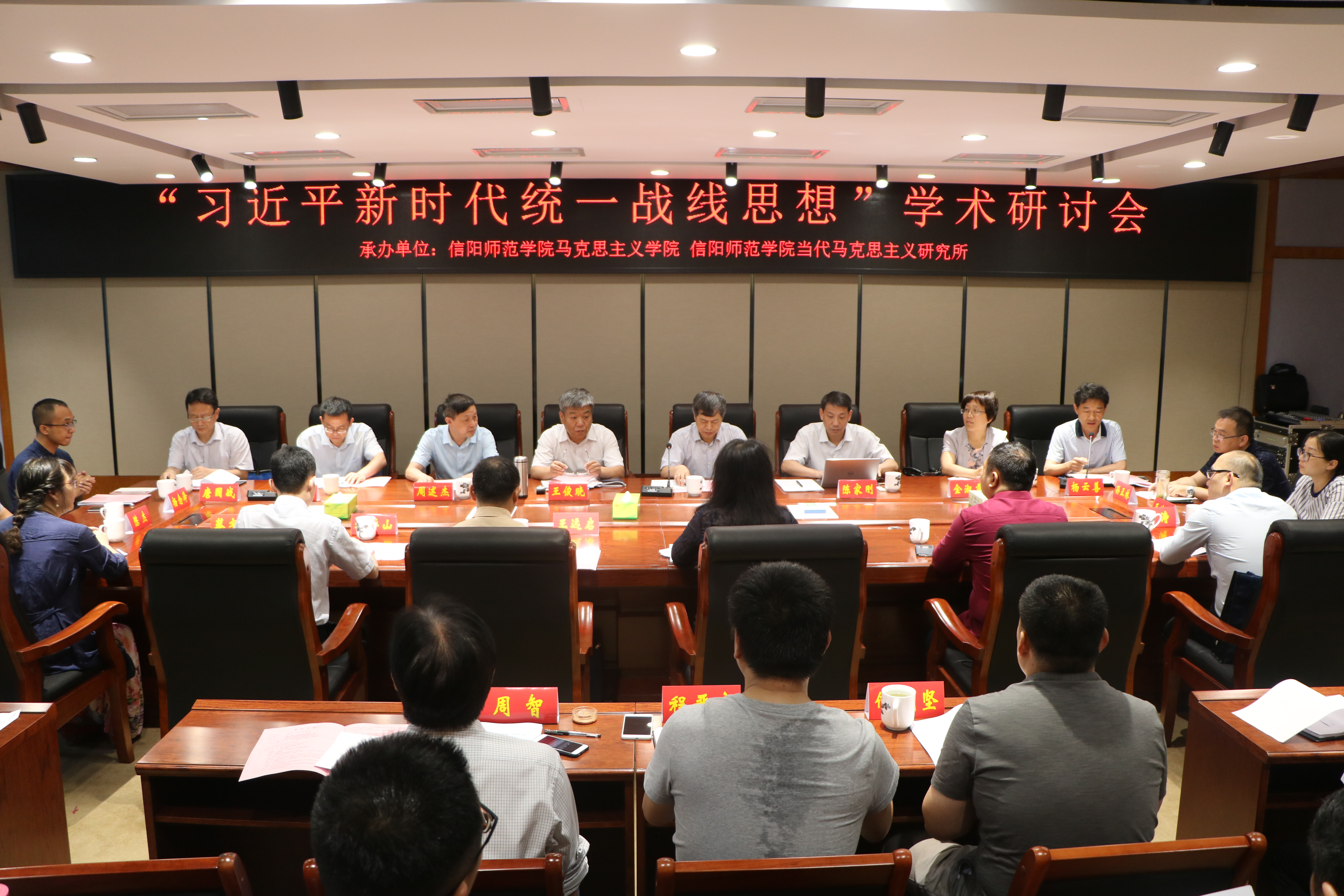 为深入学习习近平新时代统一战线思想,5月19日,由信阳师范学院太阳集团tyc5997和当代马克思主义研究所共同承办的“习近平新时代统一战线思想”学术研讨会在我校逸夫楼三楼会议室隆重召开。校长李俊、河南省社会主义学院副院长王俊晓、湖南省社会主义学院副院长周述杰、中央党史和文献研究院研究员陈家刚、复旦大学统战理论研究基地副秘书长肖存良、山东大学当代社会主义研究所办公室主任金淑霞