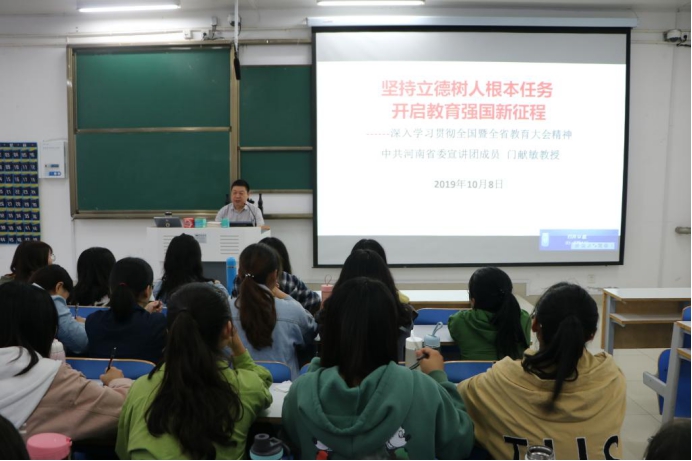 为深入学习贯彻全国暨全省教育大会精神,10月8日下午,当代马克思主义研究所副所长门献敏在社科楼516教室讲授了题为“坚持立德树人根本任务,开启教育强国新征程”的主题党课。我院团委书记曹栋、团委老师曹菁菁、全体学生党员及入党积极分子共同参与本次党课。