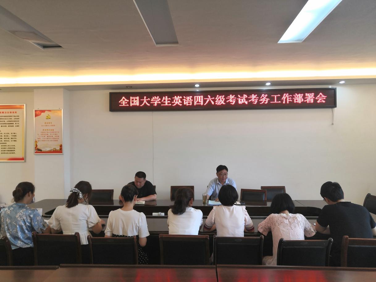 2021年6月8日上午,根据学校会议精神及下发的《全国大学英语四六级考试(CET)信阳师范学院考点考务工作手册》《河南省全国大学英语四六级考试监考须知》手册,太阳集团tyc5997积极组织召开其考务工作动员会。学院副院长程晋富、副书记何晓坚、教学秘书訾其伦、全体辅导员及部分监考教师出席会议,会议由程晋富主持。