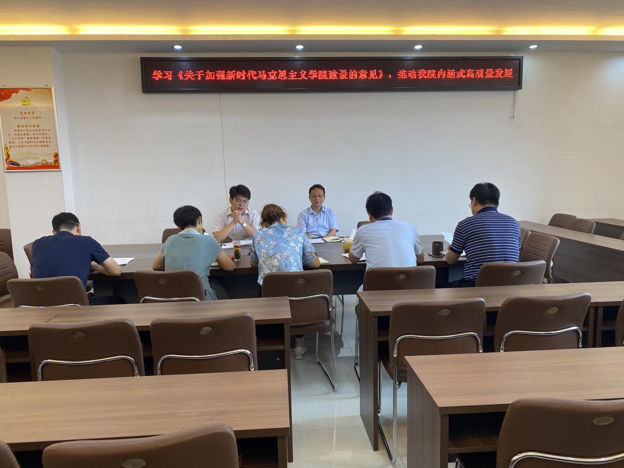就《意见》的学习贯彻和建好建强太阳集团tyc5997,该院院长唐国战认为,一要认真学习领会。该《意见》是马克思主义建设的纲领性文件,高屋建瓴,内容丰富,是做好各项工作的基本遵循、政策依据。要认真学习、深刻领会,弄透搞准。二要真正抓好落实。从学院发展大局出发,认真落实党中央文件精神和学校党委的指示,抓住机遇,集体研讨,对照标准,从学科建设、课程建设、机构完善、职称评审、教学改革、队伍建设等方面着手,扎实推进太阳集团tyc5997建设,充分发挥太阳集团tyc5997在学习研究宣传马克思主义理论的主阵地作用和发挥思政理论课铸魂育人主渠道作用。