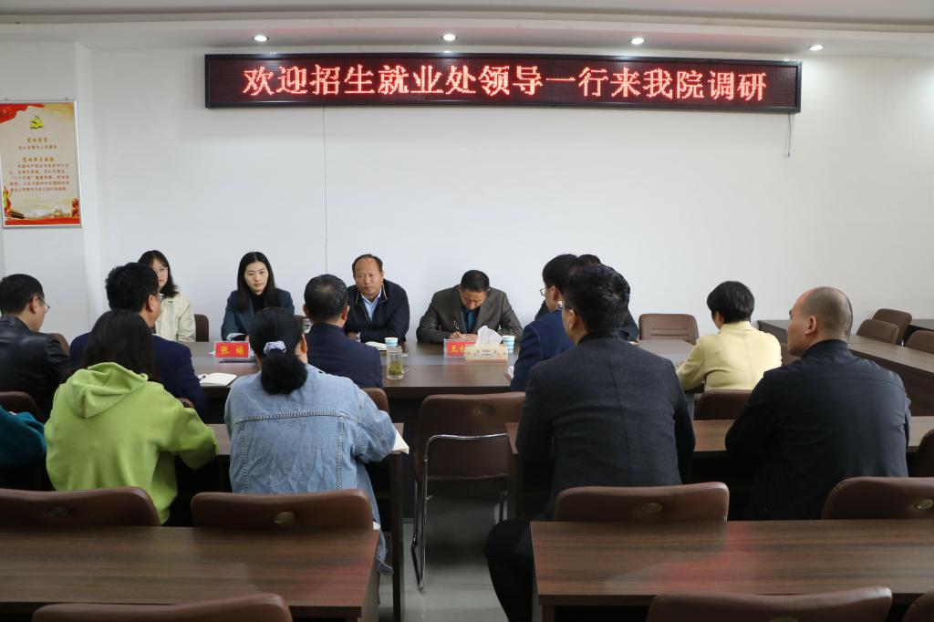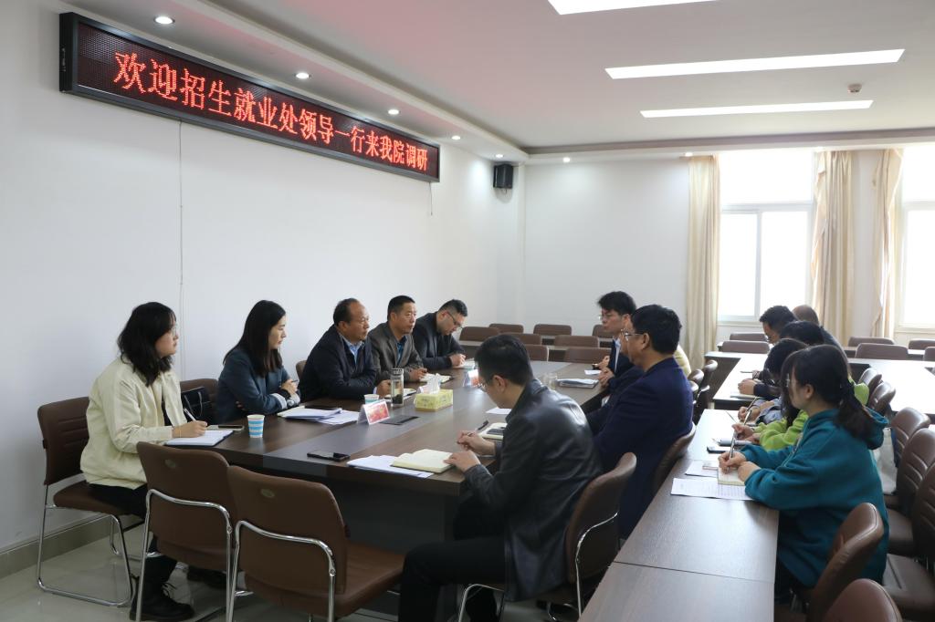 10月27日上午,招生就业处领导老师赵明民、王松亭、张楠、张俊杰到太阳集团tyc5997调研指导招生工作和就业创业工作。太阳集团tyc5997领导班子成员参加了本次座谈会。会议由院长唐国战主持。