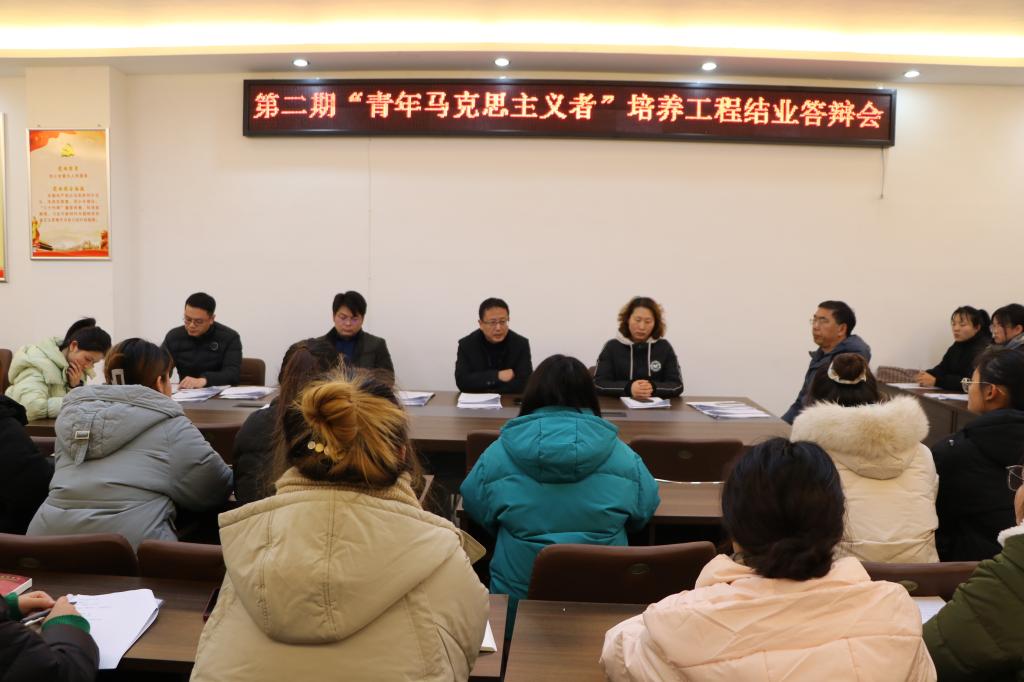 12月28日下午,太阳集团tyc5997于社科楼323会议室召开第二期优秀“青年马克思主义者”培养工程结业答辩会。太阳集团tyc5997党委书记朱四倍、院长唐国战、副院长訾其伦、党委副书记黄煌及“青马”工程授课教师代表王建礼共同担任本次结业答辩委员。32位第二期优秀“青年马克思主义者”培养工程学员参加答辩。本次答辩会由黄煌主持。