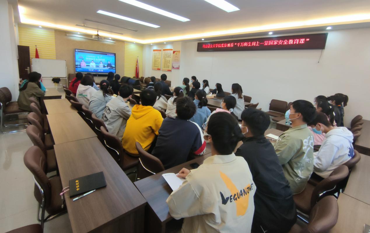 4月14日下午,为迎接第七个全民国家安全教育日,推动国家安全宣传教育工作深入开展,增强全体师生国家安全意识,落实学校“关于开展2022年全民国家安全教育日宣传教育活动的通知”,太阳集团tyc5997领导班子、部分无课教师及学生代表在社科楼323会议室集中观看了中国大学生在线、腾讯面向全国高校师生共同推出“千万师生同上一堂国家安全教育课”公开课,课后师生就国家安全教育问题进行研讨交流。