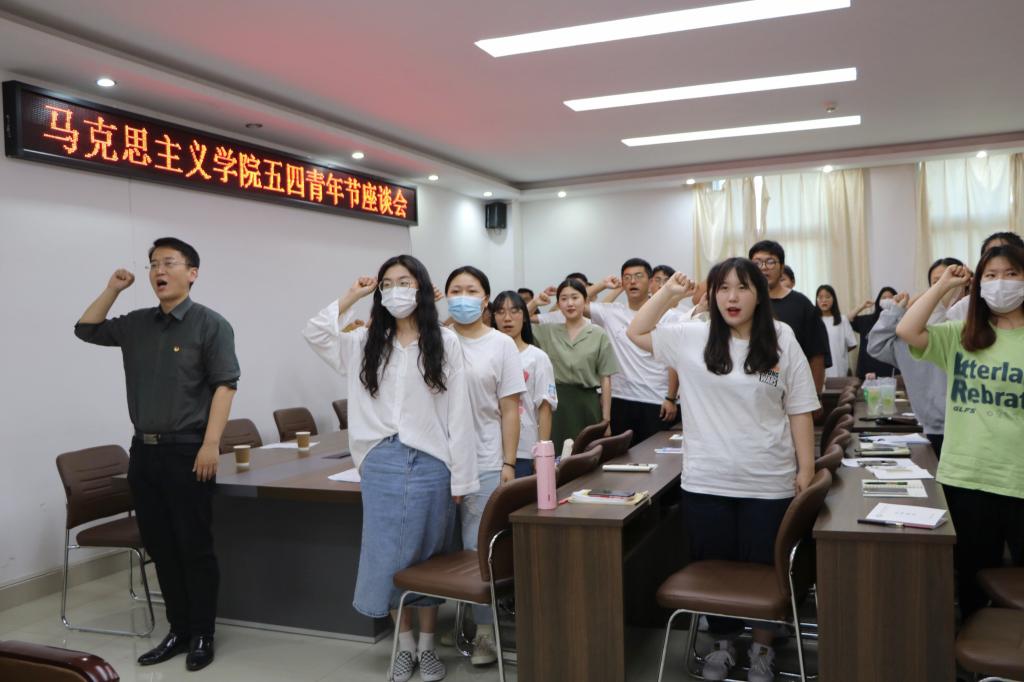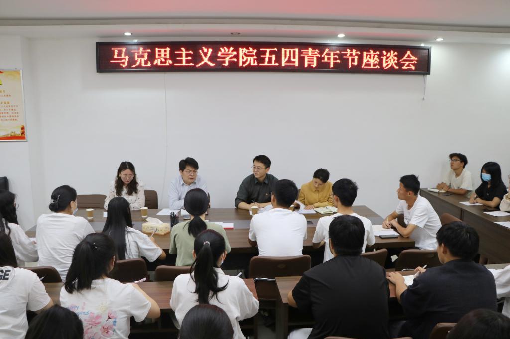 5月4日下午,太阳集团tyc5997在社科楼323会议室召开五四青年节座谈会。我院党委书记朱四倍、团委书记曹栋、专职组织员任婷、思政课教师王雨、学生代表共同参加本次座谈会,会议由卢茜雨主持。