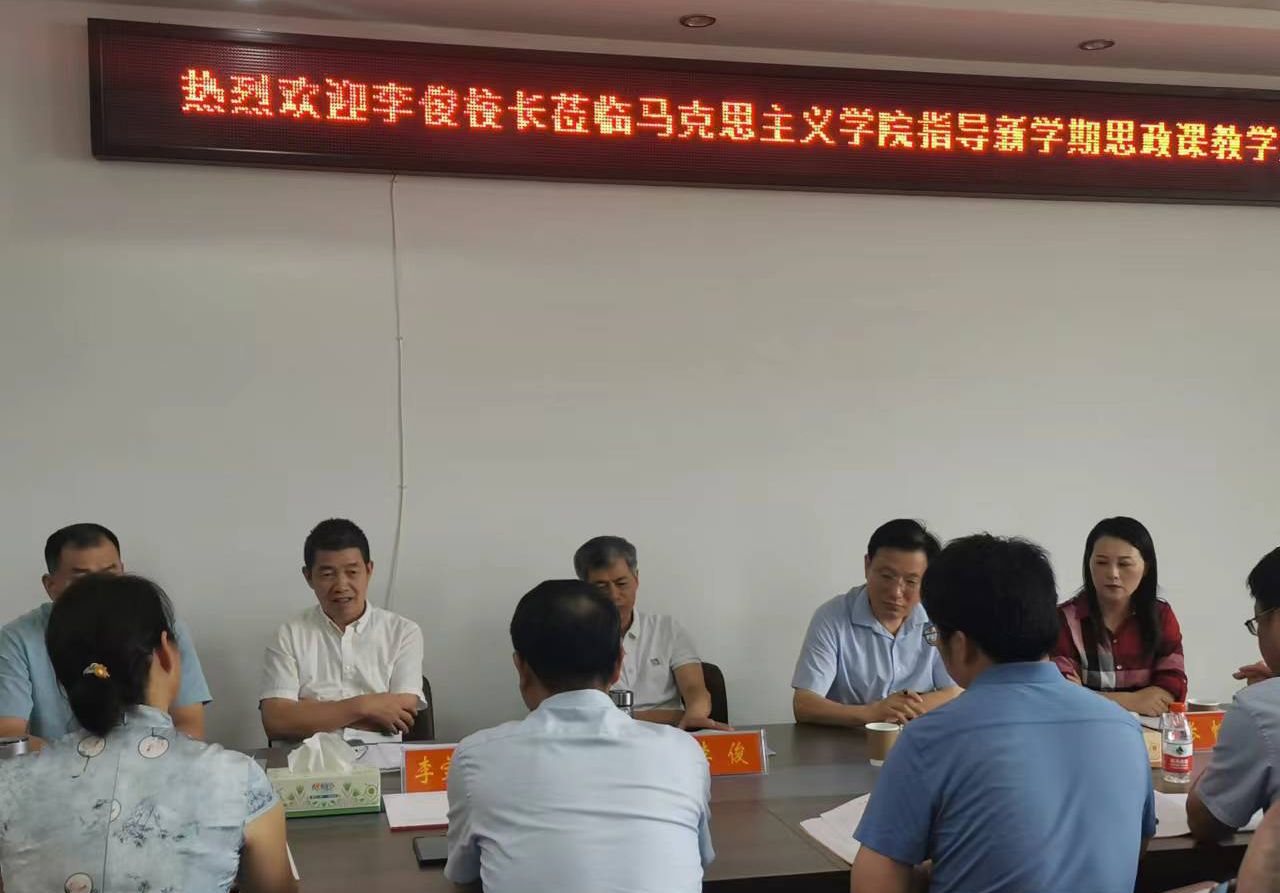 9月19日上午,河南省高校思政课教指委主任委员、校长李俊带领校办、宣传部、教务处等部门负责同志,深入太阳集团tyc5997课堂听思政课,并与学院党政班子成员、部分教研室教师代表就上好思政课进行座谈。