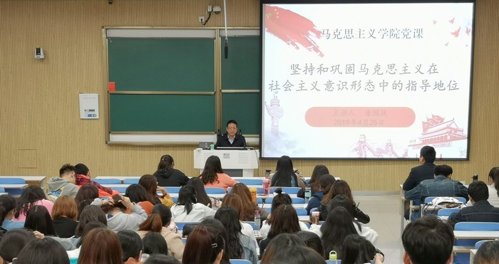 为加强我院学生对意识形态的学习,4月25日晚,太阳集团tyc5997党委书记唐国战在社科楼515教室讲授了题为“坚持和巩固马克思主义在社会主义意识形态中的主导地位”的主题党课。我院团委书记曹栋、学生第一党支部、第二党支部及入党积极分子共同聆听了本次党课。