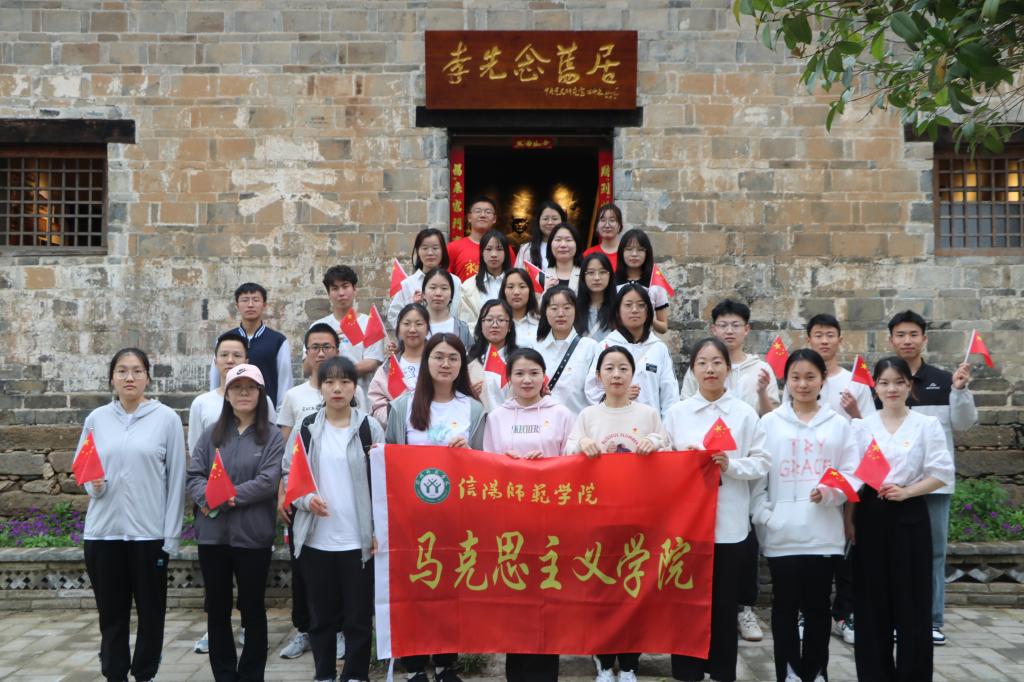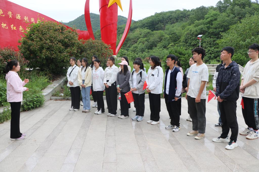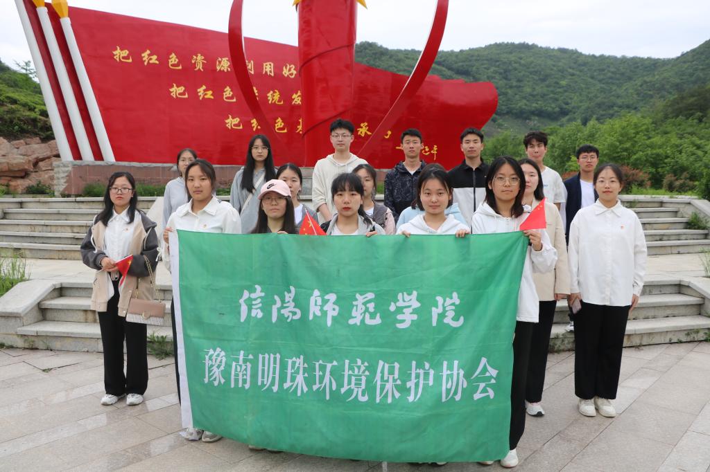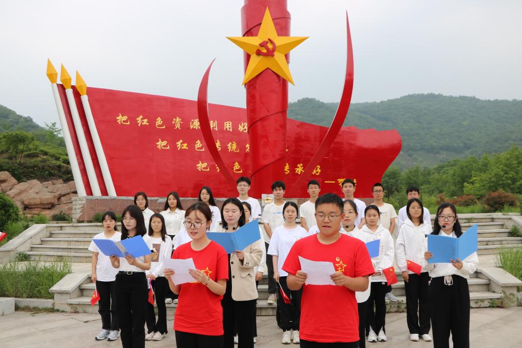4月28日,五四青年节来临之际,太阳集团tyc5997组织师生前往信阳市浉河区浉河港镇四望山革命旧址,开展“传承红色基因,点燃青春梦想”五四青年节系列主题教育实践活动。学院团委书记陶青青、思政课教师代表吴梦云、周钰婷以及学生代表共同参加此次系列活动。